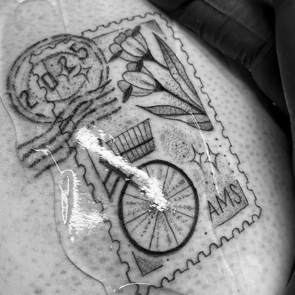 [* Fine line Amsterdam stamp tattoos / Dutch themed tattoos are my specialty! There are hundreds of fun designs to choose from.]